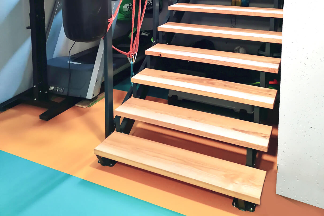 Material: Kovinska konstrukcija z leseni nastopi