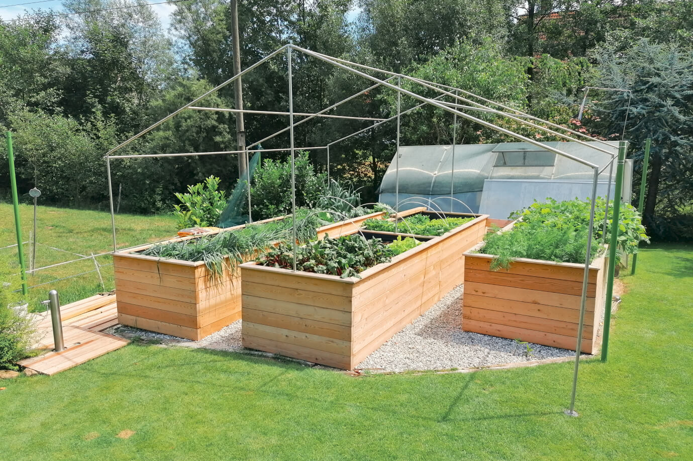 Material:  Viseča kovinska konstrukcija s kritino iz polikarbonatega stekla